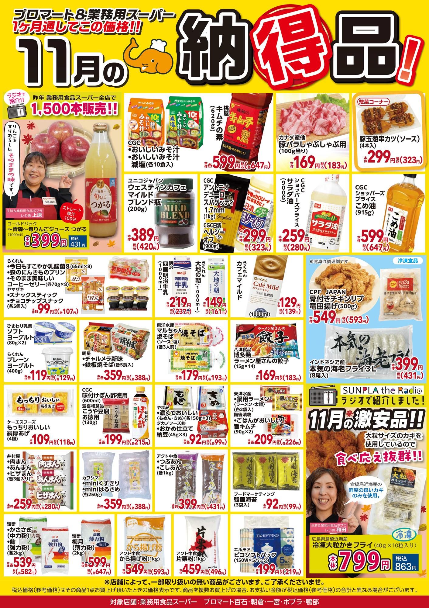今月の納得品 11 月(業務用食品スーパー)